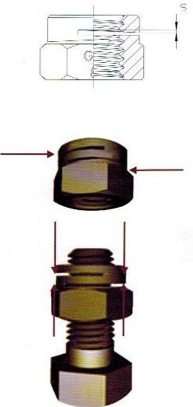 開槽鎖緊螺母的鎖緊槽經(jīng)精密加工而成,使內(nèi)螺紋產(chǎn)生一距差。當(dāng)螺栓旋入時(shí),內(nèi)螺紋回復(fù)原有螺距,發(fā)生彈性產(chǎn)生的彈性力將內(nèi)外螺紋緊密嚙合,使螺母牢固的自鎖螺栓有一種對(duì)稱開槽的設(shè)計(jì),可使鎖緊力均衡分布在上,使嚙齒更緊密,適合于震動(dòng)更劇烈的應(yīng)用.